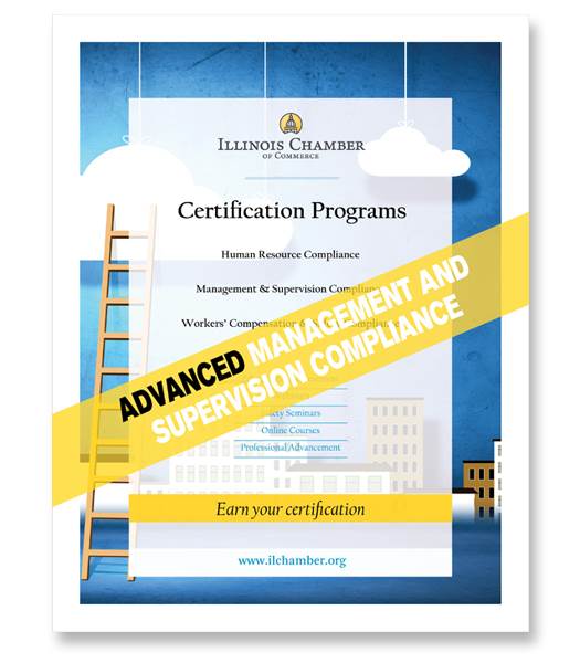 The Illinois Chamber of Commerce is offering compliance certification programs to recognize ongoing continuing education efforts and professional development in the areas of Human Resources Compliance, Workers’ Compensation and Safety Compliance and Management & Supervision Compliance.