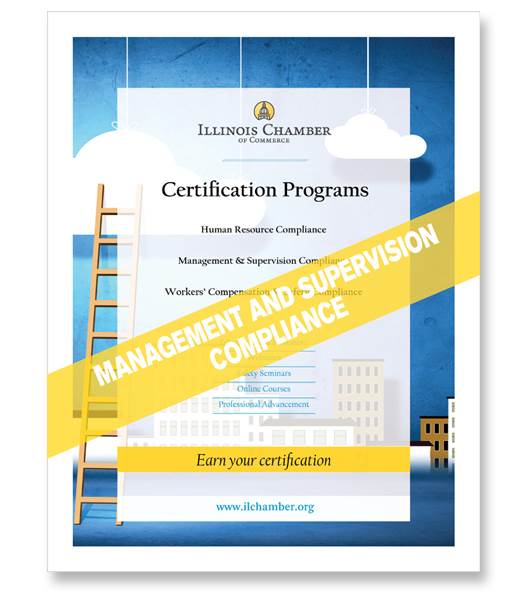 The Illinois Chamber of Commerce is offering compliance certification programs to recognize ongoing continuing education efforts and professional development in the areas of Human Resources Compliance, Workers’ Compensation and Safety Compliance and Management & Supervision Compliance.
